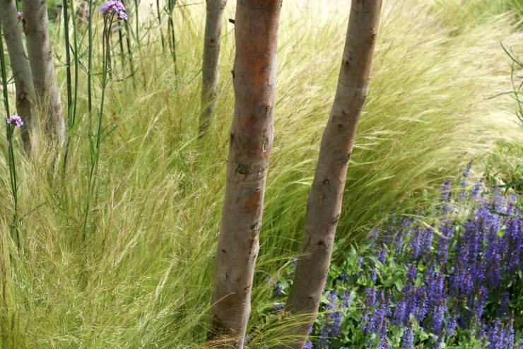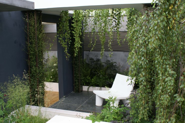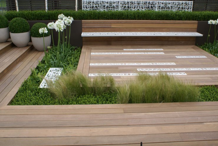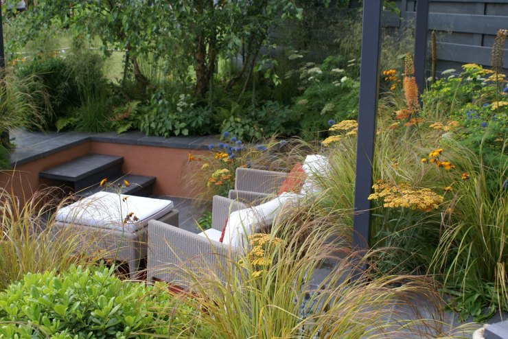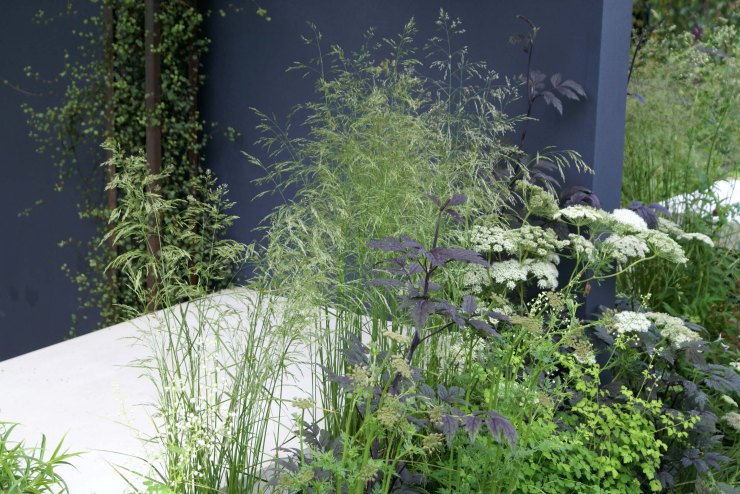 July 2012, visiting Hampton Court Flower Show. The gardens main trend features the contrast of linear hard landscape elements and soft naturalistic plantings, inspired by NY High Line.
