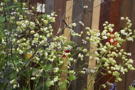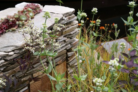 Par Nigel Dunnett & The Landscape Agency, exclusivement alimenté par l’eau de pluie collectée via le toit et les murs végétalisés. Pensé comme un jardin naturel et changeant, havre pour la faune et la flore, s’inspirant des idées avant-gardistes du jardin sauvage de William Robinson (1838-1935) en écho au mouvement Arts and Craft. Full-size rain garden by Nigel Dunnett & The Landscape Agency. Naturalistic planting inspired from the planting ideas of Victorian horticulturist William Robinson and a fresh look at the quality and craftsmanship of the Arts and Crafts movement to create this forward-looking wild garden.