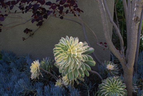 Les jardins profitent crânement de la douceur du climat californien, cactées, succulentes, palmiers, haies de bougainvilliers et callistemons géants, fougères arborescentes,..