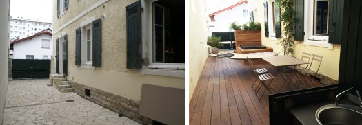 Courtyard with a bath tub, downtown Bayonne, France. Design and follow up by Atelier 10.