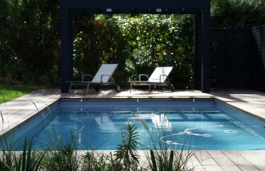 Création d’un espace piscine et pergola dans le prolongement architectural de la villa. Conception & suivi Atelier 10.