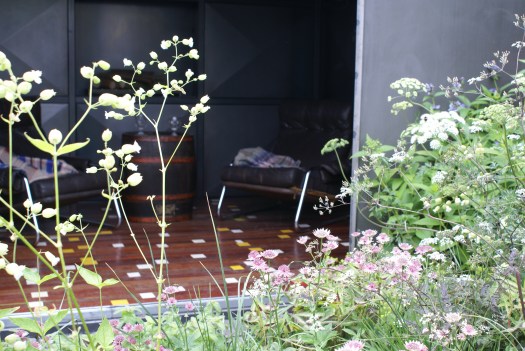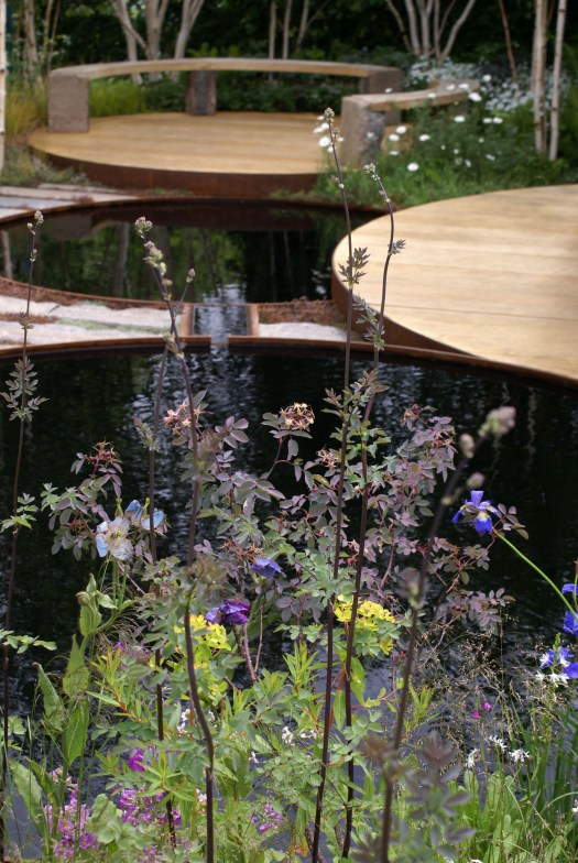 Par Nigel Dunnett & The Landscape Agency, exclusivement alimenté par l’eau de pluie collectée via le toit et les murs végétalisés. Pensé comme un jardin naturel et changeant, havre pour la faune et la flore, s’inspirant des idées avant-gardistes du jardin sauvage de William Robinson (1838-1935) en écho au mouvement Arts and Craft. Full-size rain garden by Nigel Dunnett & The Landscape Agency. Naturalistic planting inspired from the planting ideas of Victorian horticulturist William Robinson and a fresh look at the quality and craftsmanship of the Arts and Crafts movement to create this forward-looking wild garden.
