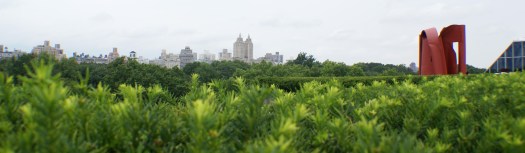 The Iris and B.Gerald Cantor Roof Garden. Sur le toit du Metropolitan Museum. Par-delà la canopée de Central Park, on aperçoit la skyline new-yorkaise. Mise en scène jusqu’au 30 octobre 2011 d’œuvres d’Anthony Caro, sculpteur londonien considéré comme le plus influent de sa génération et une figure dans le développement de la sculpture moderne ces 60 dernières années.