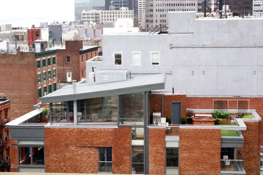Remarquable extension sur un immeuble en briques rouges typique du Lower Manhattan. Meat Packing, Chelsea.